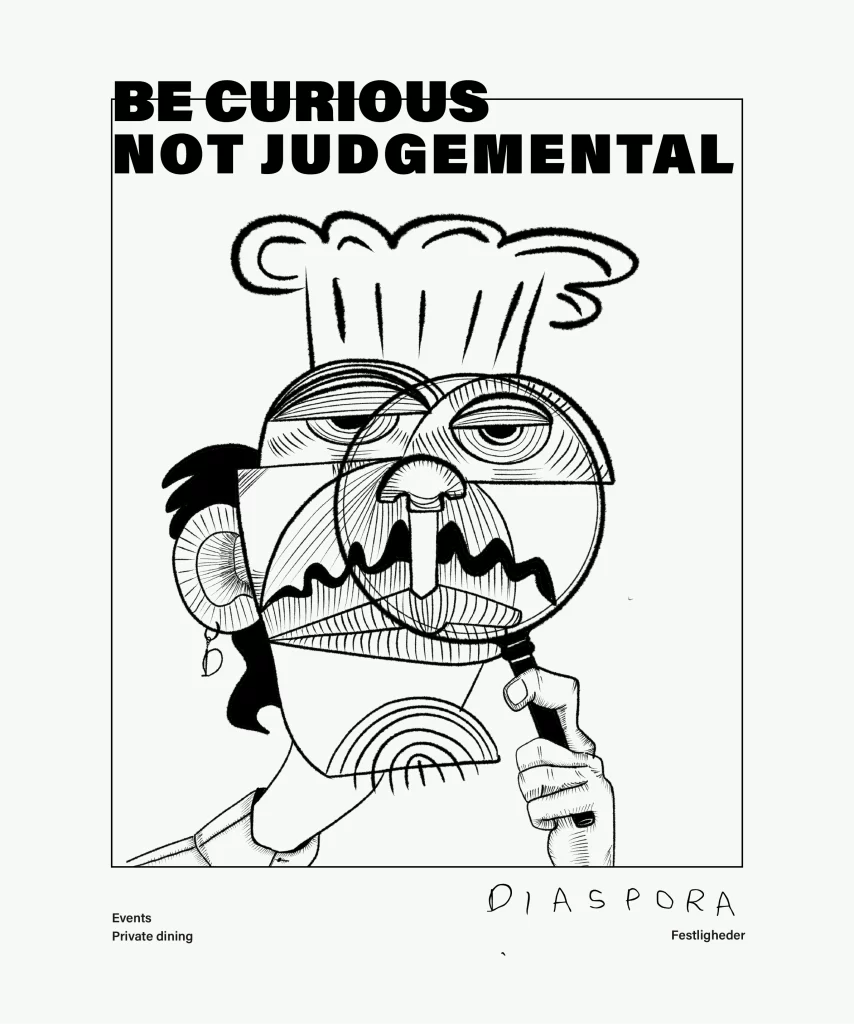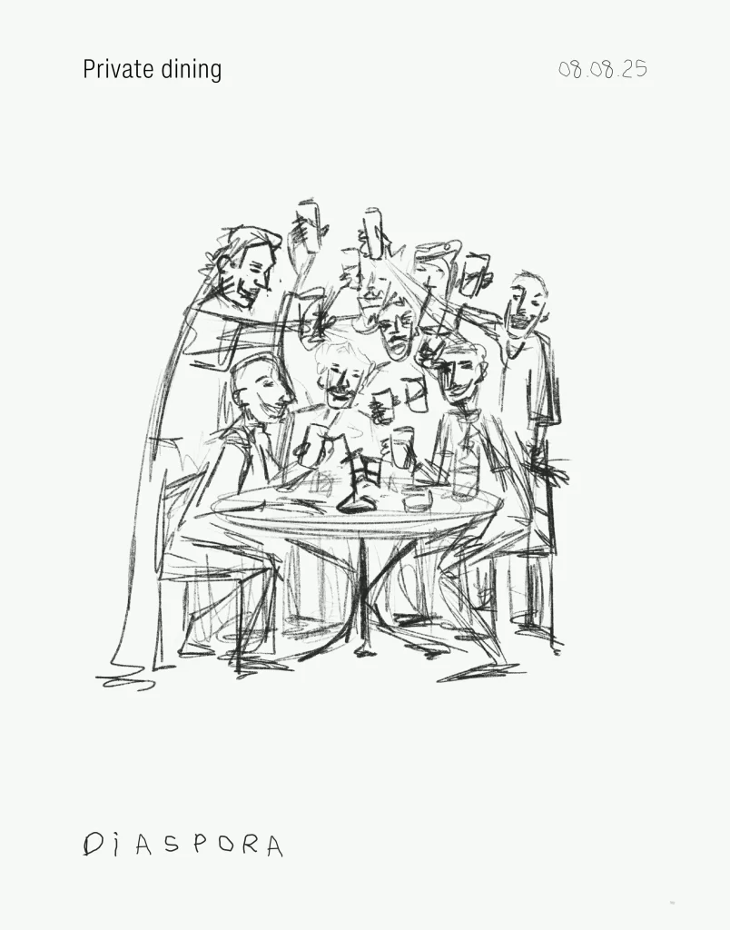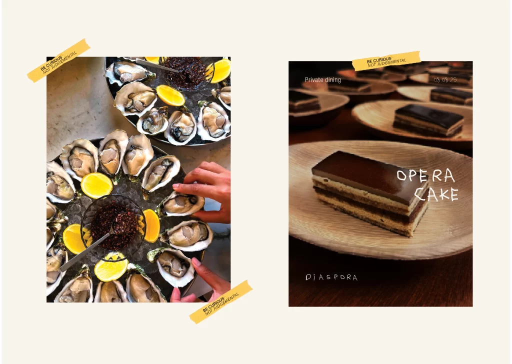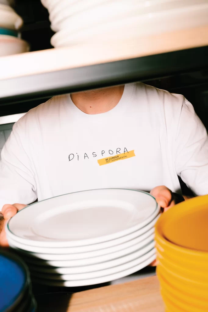 After many years working in the fine dining industry, he decided to create his own venture, one that would serve as a reflection of his life experiences and personal story. The name DIASPORA was chosen to symbolise movement and cultural exchange, the act of relocating without losing one’s roots.