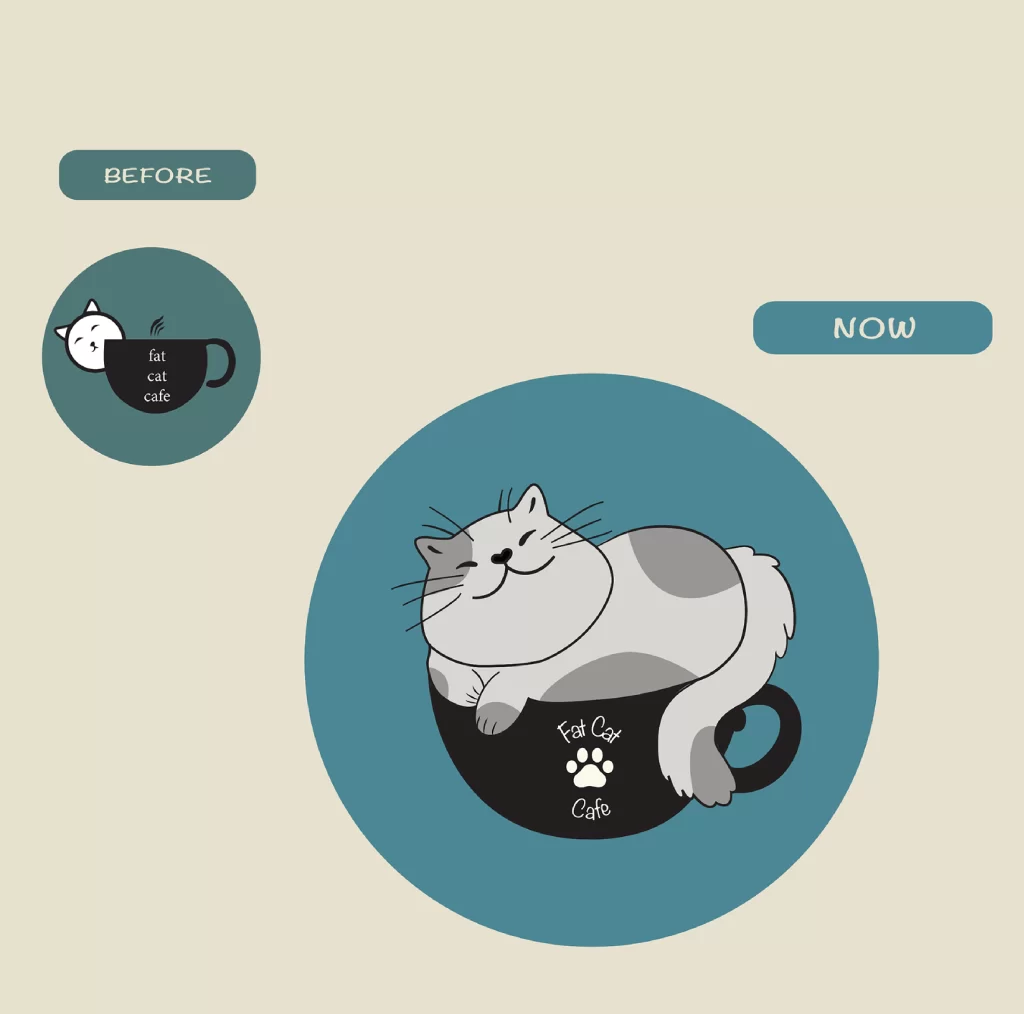 The central idea behind the redesign was to create a mascot that embodied the café’s name, a cat that was both chubby and adorable, while maintaining some of the existing visual shapes to ensure continuity with their original identity. The new mascot became a relatable and charming symbol that resonates with customers, adding warmth and personality to the brand.