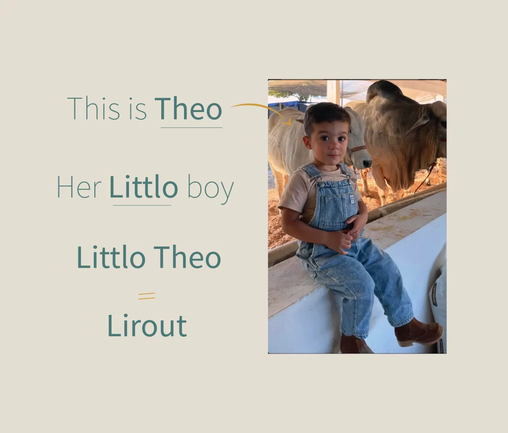 In Brazil “Little” often sounds like “Lirou” when spoken, so we embraced this natural pronunciation, By adding the letter T- representing Theo- we arrived at LIROUT : a name that keeps the heart of the original while making it uniquely our own.